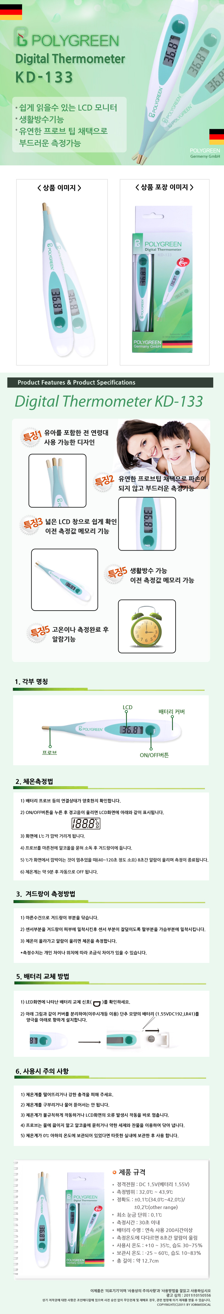 조인 폴리그린 전자체온계 KD-133—