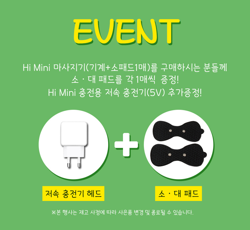 하이미니 저주파 마사지기 1갑 + 패드 소1매+대1매 + 충전기 단자